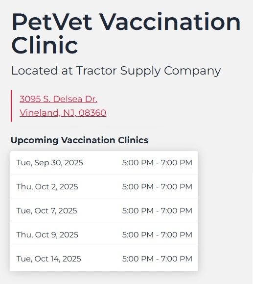 Animal Outreach is now operating the spay/neuter clinic. Please call 609-827-5082 to schedule an appointment.
